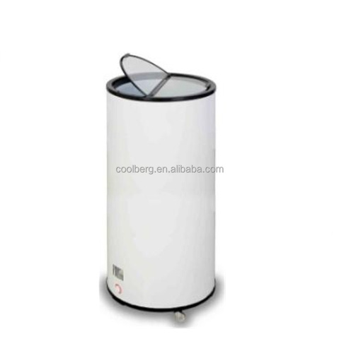 77L redondo cilindro refrigerador comercial mini exposição refrigerado refrigerador pode com tampa de vidro